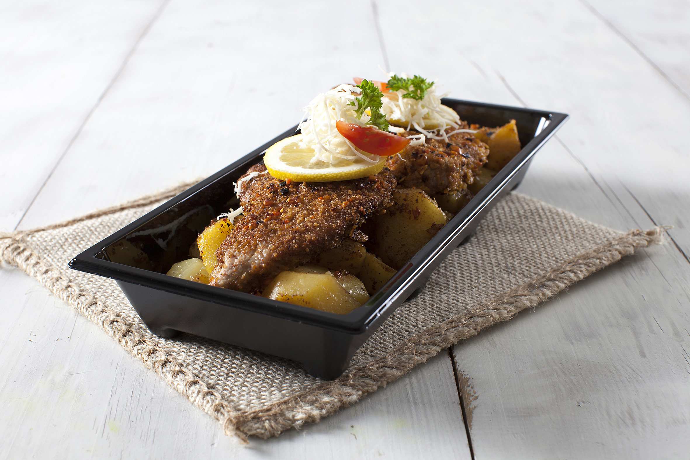 NB: Billedet viser et eksempel på en schnitzel med tilbehør.